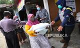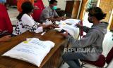 REPUBLIKA.CO.ID,YOGYAKARTA -- Warga mengambil bantuan beras di Kalurahan Umbulharjo, Sleman, Yogyakarta, Kamis (12/8).