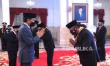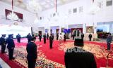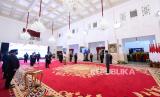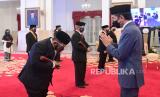 REPUBLIKA.CO.ID, JAKARTA -- Presiden Joko Widodo menghadiri Upacara Penganugerahan Tanda Kehormatan Republik Indonesia di Istana Negara, Jakarta, Kamis (12/8/2021). Pemerintah memberikan Tanda Kehormatan Republik Indonesia kepada 355 penerima yang terdiri dari para mantan pejabat negara, pengusaha, ilmuwan, Warga Negara Asing, dan para tenaga kesehatan yang gugur saat menangani COVID-19 berdasarkan Keputusan Presiden tertanggal 4 Agustus 2021.