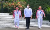REPUBLIKA.CO.ID,JAKARTA -- Presiden Joko Widodo didampingi Menpora Zainudin Amali memberikan ucapan selamat kepada para atlit dan official tim Olimoade Indonesia 2021, di Istana Bogor, Jawa Barat, Jumat (13/8/2021).
