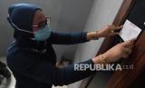 REPUBLIKA.CO.ID,JAKARTA -- Pengurus RW menempelkan stiker vaksin di rumah warga di lingkungan RW 07, Kebayoran Lama Utara, Jakarta, Jumat (13/8/2021).