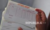 Pengurus RW menunjukan stiker vaksin yang akan ditempel di rumah warga di lingkungan RW 07, Kebayoran Lama Utara, Jakarta, Jumat (13/8/2021). Pemasangan stiker vaksin yang digagas oleh Ketua RW tersebut untuk mendata seluruh warga yang sudah dan belum divaksinasi COVID-19 beserta alasannya agar warga yang belum divaksin bisa mengikuti vaksinasi. (FOTO : Antara/Hafidz Mubarak A)