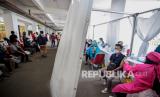 REPUBLIKA.CO.ID,BOGOR -- Warga mengikuti vaksinasi massal Kemerdekaan di Stadion Pakansari, Cibinong, Kabupaten Bogor, Jawa Barat, Sabtu (14/8/2021).