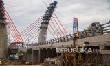 REPUBLIKA.CO.ID,BANJARMASIN -- Pekerja menyelesaikan proyek pembangunan jembatan Sungai Alalak di Banjarmasin, Kalimantan Selatan, Sabtu (14/8/2021).
