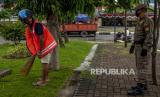 Seorang warga yang melanggar protokol kesehatan menyapu di salah satu ruang publik di Palu, Sulawesi Tengah, Kamis (12/8/2021). Pemerintah setempat memperketat penerapan protokol kesehatan bagi warga dan memberlakukan sanksi administratif dan sanksi sosial kepada pelanggar untuk meredam laju peningkatan kasus COVID-19 di zona merah tersebut. (FOTO : ANTARA/Basri Marzuki/wsj.)
