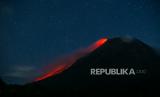 REPUBLIKA.CO.ID, SLEMAN -- Luncuran lava pijar Gunung Merapi terlihat dari Cangkringan, Sleman, DI Yogyakarta, Minggu (15/8/2021). Menurut data Balai Penyelidikan dan Pengembangan Teknologi Kebencanaan Geologi (BPPTKG) periode pengamatan Minggu, 15 Agustus 2021 pukul 00:00-06.00 WIB terjadi satu kali awan panas guguran dengan jarak luncur 2.000 meter dan 10 kali guguran lava pijar dengan jarak luncur maksimal 1.500 meter ke arah barat daya. ANTARA FOTO/Hendra Nurdiyansyah/foc.