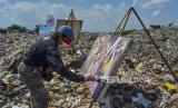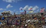Sejumlah seniman dari Komunitas Cermin memajang hasil lukisannya ditumpukan sampah dalam acara Ngaruat Kemerdekaan RI ke-76 di Tempat Pembuangan Akhir Sampah (TPAS) Cianggir, Kota Tasikmalaya, Jawa Barat, Minggu (15/8/2021). Sebanyak tujuh pelukis menuangkan kritik melalui lukisan untuk merespon kondisi lingkungan dan sampah serta hasil lukisannya akan dilelang dan didonasikan untuk warga terdampak pandemi COVID-19. (FOTO : ANTARA/Adeng Bustomi)