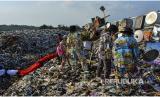 Budayawan Tasikmalaya Ashmansyah Timutiah dari Komunitas Cermin melakukan aksi teatrikal ditumpukan sampah dalam acara Ngaruat Kemerdekaan RI ke-76 di Tempat Pembuangan Akhir Sampah (TPAS) Cianggir, Kota Tasikmalaya, Jawa Barat, Minggu (15/8/2021). Sebanyak tujuh pelukis menuangkan kritik melalui lukisan untuk merespon kondisi lingkungan dan sampah serta hasil lukisannya akan dilelang dan didonasikan untuk warga terdampak pandemi COVID-19. (FOTO : ANTARA/Adeng Bustomi)