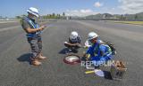 REPUBLIKA.CO.ID, MANDALIKA -- Sejumlah pekerja melakukan tes kedalaman tekstur aspal lintasan Mandalika International Street Circuit di Kawasan Ekonomi Khusus (KEK) Mandalika, Pujut, Praya, Lombok Tengah, NTB, Minggu (15/8/2021).
