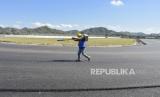 Seorang pekerja berada di tikungan ke 2 lintasan Mandalika International Street Circuit di Kawasan Ekonomi Khusus (KEK) Mandalika, Pujut, Praya, Lombok Tengah, NTB, Ahad (15/8/2021). Sirkuit Mandalika merupakan salah satu sirkuit terbaik menggunakan teknologi Stone Mastic Asphalt (SMA) yaitu salah satu jenis campuran aspal panas yang dapat digunakan sebagai lapis permukaan lintasan dengan prinsip kontak stone by stone dan saat ini sirkuit Mandalika siap untuk menggelar event balap motor FIM Superbike World Championship (WSBK) pada 12-14 November 2021. (FOTO : ANTARA/Ahmad Subaidi)
