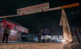 Sejumlah petugas berjaga di portal jalan masuk dan keluar ke Kabupaten Sigi di Desa Baliase, Sigi, Sulawesi Tengah, Senin (16/8/2021). Pemerintah setempat memberlakukan jam malam dan membatasi akses masuk dan keluar di wilayah itu mulai pukul 21.00 - 01.00 Wita untuk menekan laju penularan COVID-19 yang meningkat signifikan lebih dari 200 persen sejak Agustus ini. (FOTO : Antara/Basri Marzuki)