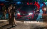 REPUBLIKA.CO.ID,SIGI -- Sejumlah petugas menghentikan pengendara di depan portal jalan masuk dan keluar ke Kabupaten Sigi di Desa Baliase, Sigi, Sulawesi Tengah, Senin (16/8/2021).