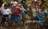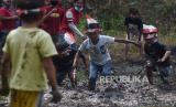 Sejumlah anak mengikuti lomba lari estafet di sawah di Kali Kidul, Kampung Kopi, Kecamatan Gunungsari, Serang, Banten, Selasa (17/8/2021). Acara yang digelar Komunitas Tani Pecinta NKRI Gunungsari bersama warga itu untuk memeriahkan HUT Kemerdekaan ke-76 RI. (FOTO : ANTARA/Asep Fathulrahman)
