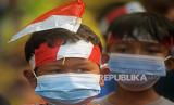 Sejumlah anak mengikuti upacara peringatan Detik-Detik Proklamasi Kemerdekaan di tengah sawah di Kali Kidul, Kampung Kopi, Kecamatan Gunungsari, Serang, Banten, Selasa (17/8/2021). Acara yang digelar oleh Komunitas Tani Pecinta NKRI Gunungsari itu dimaksudkan untuk memupuk rasa nasionalisme di kalangan warga sekaligus memeriahkan HUT Kemerdekaan ke-76 RI. (FOTO : ANTARA/Asep Fathulrahman)