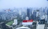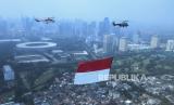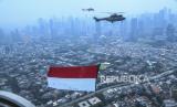 REPUBLIKA.CO.ID, JAKARTA -- Helikopter TNI AU mengibarkan bendera merah putih raksasa di kawasan Jakarta, Selasa (17/8/2021). TNI Angkatan Udara mengerahkan enam helikopter yang membawa bendera merah putih raksasa dengan ukuran 30 meter x 20 meter untuk melintas dari timur ke barat di langit Jakarta dalam rangka memperingati HUT Kemerdekaan ke-76 RI.