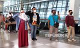 Sejumlah calon penumpang pesawat melakukan hormat dan sikap sempurna saat peringatan Detik-Detik Proklamasi di Terminal 3, Bandara Soekarno Hatta, Tangerang, Banten, Selasa (17/8/2021). Upacara bendera yang juga diikuti sejumlah calon penumpang pesawat ini tersebut dilaksanakan dalam rangka memperingati HUT Kemerdekaan Ke- 76 Republik Indonesia. (FOTO : ANTARA/Muhammad Iqbal)