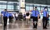Upacara bendera yang juga diikuti sejumlah calon penumpang pesawat tersebut dilaksanakan dalam rangka memperingati HUT ke-76 Kemerdekaan Republik Indonesia.