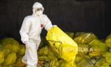 REPUBLIKA.CO.ID, JAKARTA -- Petugas memindahkan kantong yang berisi limbah medis yang berbahan berbahaya dan beracun (B3) di Rumah Sakit Darurat COVID-19 (RSDC) Wisma Atlet, Kemayoran, Jakarta, Selasa (17/8/2021).