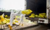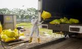 Petugas memindahkan kantong yang berisi limbah medis yang berbahan berbahaya dan beracun (B3) ke dalam truk di Rumah Sakit Darurat COVID-19 (RSDC) Wisma Atlet, Kemayoran, Jakarta, Selasa (17/8/2021). Menteri Koordinator Bidang Kemaritiman dan Investasi, Luhut Binsar Pandjaitan, menyatakan perlunya tindakan yang cepat dan tepat terkait pengelolaan limbah medis COVID-19 yang mencakup Bahan Berbahaya dan Beracun (B3) yang pada Juli 2021 terdapat peningkatan mencapai 18 juta ton. (FOTO : ANTARA/M Risyal Hidayat)