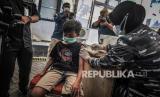 REPUBLIKA.CO.ID, JAKARTA -- Tenaga kesehatan menyuntikkan vaksin COVID-19 kepada warga saat Serbuan Vaksin Masyarakat Maritim di Kantor Lurah Rorotan, Cilincing, Jakarta Utara, Rabu (18/8/2021). TNI AL menggelar Serbuan Vaksin COVID-19 yang menyasar masyarakat setempat guna mendukung percepatan pencapaian program pemerintah untuk membentuk kekebalan komunal.