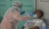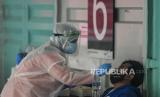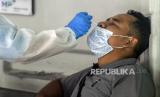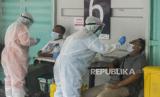 Petugas melakukan tes PCR kepada warga di GSI Lab, Jakarta, Rabu (18/8). Kementerian Kesehatan telah menetapkan tarif tertinggi tes PCR di Jawa-Bali Rp 495.000 dan Rp 525.000 di luar Jawa- Bali serta mewajibkan hasil tes tersebut untuk selesai dalam waktu 24 jam. (FOTO : Republika/Putra M. Akbar)