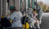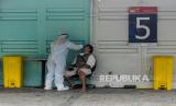 REPUBLIKA.CO.ID,JAKARTA -- Petugas melakukan tes PCR kepada warga di GSI Lab, Jakarta, Rabu (18/8).