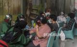 Sejumlah warga menunggu waktu untuk disuntik vaksin Covid-19 di UPN Veteran Jakarta, Rabu (18/8). UPN Veteran Jakarta mengadakan program vaksinasi terbuka bagi masyarakat umum dengan total kuota vaksin sebanyak 1.000 dosis dalam rangka meningkatkan herd imunity. Republika/Putra m. Akbar (FOTO : Republika/Putra M. Akbar)