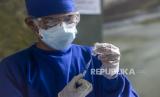 Tenaga kesehatan memasukan dosis vaksin ke suntikan di UPN Veteran Jakarta, Rabu (18/8). UPN Veteran Jakarta mengadakan program vaksinasi terbuka bagi masyarakat umum dengan total kuota vaksin sebanyak 1.000 dosis dalam rangka meningkatkan herd imunity. Republika/Putra m. Akbar (FOTO : Republika/Putra M. Akbar)