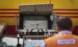 REPUBLIKA.CO.ID, BANTEN -- Petugas cargo menurunkan envirotainer berisi vaksin COVID-19 Pfizer dari pesawat setibanya di Terminal Cargo Bandara Internasional Soekarno Hatta, Tangerang, Banten, Kamis (19/8/2021). Sebanyak 1,5 juta vaksin COVID-19 Pfizer tiba perdana di Indonesia yang bakal dialokasikan untuk program vaksinasi nasional. ANTARA FOTO/Fauzan/foc.