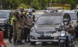 Petugas gabungan memeriksa dokumen syarat melakukan perjalanan pengemudi yang hendak memasuki Kota Banjarmasin saat pemberlakuan pengetatan di Jalan Ahmad Yani, Banjarmasin, Kalimantan Selatan, Kamis (19/8/2021). Pemerintah Kota Banjarmasin bersama Kodim 1007/Banjarmasin dan Polresta Banjarmasin dalam pelaksanaan PPKM Level 4 melakukan pengetatan kepada masyarakat yang hendak memasuki Kota Banjarmasin guna menekan penyeberan dan penularan COVID-19. (FOTO : ANTARA/Bayu Pratama S)