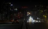 Suasana jalan utama yang dimatikan lampunya saat penerapan jam malam di Jalan Ahmad Yani, Banjarmasin, Kalimantan Selatan, Kamis (19/8/2021). Polresta Banjarmasin mulai memberlakukan penerapan jam malam saat PPKM Level 4 mulai pukul 20.00 WITA dengan menutup akses ke dalam kota dan mematikan lampu penerangan jalan umum utama di Kota Banjarmasin guna mengurangi serta membatasi mobilitas warga untuk menekan dan memutus mata rantai penyebaran virus COVID-19. (FOTO : ANTARA/Bayu Pratama S)