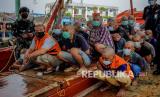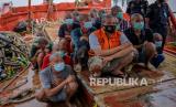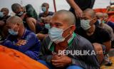 Anak buah kapal (ABK) kapal asing diamankan Personel Direktorat Jenderal Pengawasan Sumber Daya Kelautan dan Perikanan (PSDKP) di Pelabuhan Pangkalan PSDKP Batam, Kepulauan Riau, Jumat (20/8/2021). PSDKP berhasil mengamankan kapal asing yang melakukan penangkapan ikan secara ilegal beserta 22 awak kapal berkewarganegaraan Vietnam di Perairan Natuna Utara. (FOTO : Antara/Teguh Prihatna)