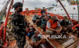 Personel Direktorat Jenderal Pengawasan Sumber Daya Kelautan dan Perikanan (PSDKP) mengamankan kapal asing beserta anak buah kapal (ABK) di Pelabuhan Pangkalan PSDKP Batam, Kepulauan Riau, Jumat (20/8/2021). PSDKP berhasil mengamankan kapal asing yang melakukan penangkapan ikan secara ilegal beserta 22 awak kapal berkewarganegaraan Vietnam di Perairan Natuna Utara. (FOTO : Antara/Teguh Prihatna)