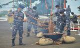 Sejumlah personel Pangkalan Utama TNI Angkatan Laut II (Lantamal II) Padang mengikuti acara Memasak Rendang sedunia, di Padang, Sumatera Barat, Sabtu (21/8/2021). Acara memasak rendang sedunia yang dilakukan secara virtual itu diikuti oleh pemasak rendang dari sejumlah negara dalam rangka pencatatan rendang sebagai warisan budaya dunia dari Sumbar Indonesia, ke UNESCO. (FOTO : ANTARA/Iggoy el Fitra)