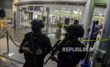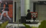 REPUBLIKA.CO.ID, DEPOK -- Garis polisi terpasang pasca kejadian jatuhnya lift barang di Mal Margo City di Kota Depok, Jawa Barat, Sabtu (21/8). Berdasarkan olah TKP pihak kepolisian, lift barang tersebut jatuh dari lantai tiga ke lantai satu sehingga menyebabkan ambruknya sebagian bangunan dan plafon di mal tersebut.