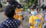 Sejumlah bocah bermain gelembung balon di Taman Suropati, Jakarta, Sabtu (21/8/2021). Meski menurut Satuan Tugas Penanganan COVID-19 menunjukkan bahwa wilayah DKI Jakarta berada di bebas zona merah, sejumlah taman di Jakarta masih belum terbuka untuk umum. (FOTO : ANTARA/M RISYAL HIDAYAT)
