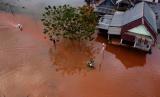 REPUBLIKA.CO.ID, KONAWE -- Foto udara warga menerobos banjir di Desa Wonoamonapa, Kecamatan Pondidaha, Konawe, Sulawesi Tenggara, Sabtu (21/8/2021). Meluapnya Sungai Konaweha yang disebabkan intensitas hujan tinggi mengakibatkan Desa Wonoamonapa dan Desa Laloika terendam banjir, sementara pihak pemerintah desa masih melakukan pendataan jumlah rumah terdampak banjir.