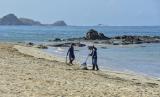 REPUBLIKA.CO.ID, MANDALIKA -- Sejumlah pekerja membersihkan sampah di pinggiran Pantai Kuta Kawasan Ekonomi Khusus (KEK) Mandalika, Kecamatan Pujut, Praya, Lombok Tengah, NTB, Sabtu (21/8/2021).