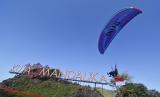 Wisatawan terbang menggunakan paralayang di Destinasi Super Prioritas Nasional Mandalika Kecamatan Pujut, Praya, Lombok Tengah, NTB, Sabtu (21/8/2021). Banyaknya bukit yang berada di sekitar kawasan wisata Pantai Mandalika dimanfaatkan oleh wisatawan untuk tempat lepas landas (take off) bermain paralayang (FOTO : ANTARA/Ahmad Subaidi)