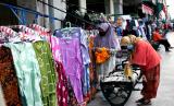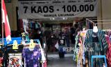 Wisatawan membeli cenderamata di kawasan wisata Malioboro, Yogyakarta, Ahad (22/8). (FOTO : Wihdan Hidayat / Republika)