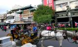 Wisatawan menyewa andong untuk berkeliling di kawasan wisata Malioboro, Yogyakarta, Ahad (22/8). (FOTO : Wihdan Hidayat / Republika)