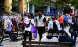 Warga mulai berkunjung ke kawasan wisata Malioboro, Yogyakarta, Ahad (22/8). Setelah sebelumnya sepi pengunjung, kini wisatawan mulai mendatangi kawasan wisata Malioboro sejak adanya pelonggaran PPKM Level 4. Sepekan terakhir, pedagang dan pelaku wisata di Malioboro juga sudah kembali beraktivitas. (FOTO : Wihdan Hidayat / Republika)