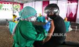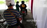 REPUBLIKA.CO.ID, YOGYAKARTA -- Warga mengikuti vaksinasi massal Covid-19 tanpa turun di Sportorium UMY, Yogyakarta, Senin (23/8). Sebanyak 3.000 dosis vaksin Covid-19 disiapkan pada vaksinasi massal kali ini. Sasaran vaksinasi yakni warga dan civitas akademika UMY. Program vaksinasi ini merupakan bagian dari percepatan vaksinasi Covid-19 di Yogyakarta.