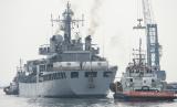 Kapa tunda menarik kapal perang Angkatan Laut India (INS) Airavat (L24) yang akan bersandar di Pelabuhan Tanjung Priok, Jakarta, Selasa (24/8/2021). Pemerintah India memberikan bantuan berupa 10 ISO Cryogenic Tanks berkapasitas 20 metrik ton oksigen cari kepada Indonesia (FOTO : ANTARA/M RISYAL HIDAYAT)