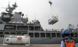 Pengawak kapal perang Angkatan Laut India (INS) Airavat (L24) membongkar muat tangki berisi oksigen medis cair di Pelabuhan Tanjung Priok, Jakarta, Selasa (24/8/2021). Pemerintah India memberikan bantuan berupa 10 ISO Cryogenic Tanks berkapasitas 20 metrik ton oksigen cari kepada Indonesia. (FOTO : ANTARA/M RISYAL HIDAYAT)