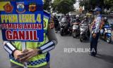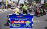 REPUBLIKA.CO.ID,CIMAHI -- Petugas kepolisian menghentikan pengendara saat uji coba pemberlakuan ganjil genap di Jalan Sangkuriang, Padasuka, Kota Cimahi, Selasa (24/8).