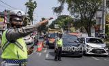 Petugas kepolisian mengatur lalu lintas saat uji coba pemberlakuan ganjil genap di Jalan Sangkuriang, Padasuka, Kota Cimahi, Selasa (24/8). Satlantas Polres Cimahi bersama Dishub Kota Cimahi melakukan uji coba pemberlakuan ganjil genap di sejumlah ruas jalan protokol di Kota Cimahi yang bertujuan untuk menekan mobilitas masyarakat guna meminimalisir penyebaran Covid-19 di masa perpanjangan PPKM. Foto: Republika/Abdan Syakura (FOTO : REPUBLIKA/ABDAN SYAKURA)