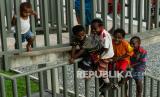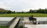 Sejumlah anak bermain di lapangan venue cabor panahan, Kampung Harapan, Kabupaten Jayapura, Papua, Selasa (24/8/2021). Venue cabor panahan PON XX Papua dengan luas bangunan 1.217 meter persegi dan luas lapangan bertanding 10.100 meter persegi dilengkapi dengan lapangan latihan seluas 8.207 meter persegi serta berada di bawah kaki Gunung Cyclop, Kabupaten Jayapura. (FOTO : Antara/Indrayadi TH)