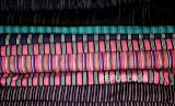 Aneka benang ynag digunakan untuk menenun kain lurik di Tenun Lurik Kurnia, Yogyakarta, Rabu (25/8). Pemberlakuan PPKM Darurat beberapa waktu lalu memukul penjualan kain lurik di sini. Namun, kini penjualan mulai pulih kembali seiring pelonggaran saat perpanjangan PPKM. Demi mematuhi protokol kesehatan, karyawan dibagi menjadi dua shift kerja. (FOTO : Wihdan Hidayat / Republika)