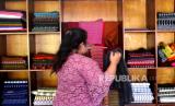 Tumpukan kain lurik siap dijual di Tenun Lurik Kurnia, Yogyakarta, Rabu (25/8). Pemberlakuan PPKM Darurat beberapa waktu lalu memukul penjualan kain lurik di sini. Namun, kini penjualan mulai pulih kembali seiring pelonggaran saat perpanjangan PPKM. Demi mematuhi protokol kesehatan, karyawan dibagi menjadi dua shift kerja. (FOTO : Wihdan Hidayat / Republika)