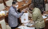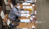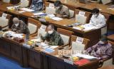 REPUBLIKA.CO.ID, JAKARTA -- Menteri Perdagangan Muhammad Lutfi (kiri) mengikuti rapat kerja dengan Komisi VI DPR di Kompleks Parlemen, Senayan, Jakarta, Rabu (25/8/2021).